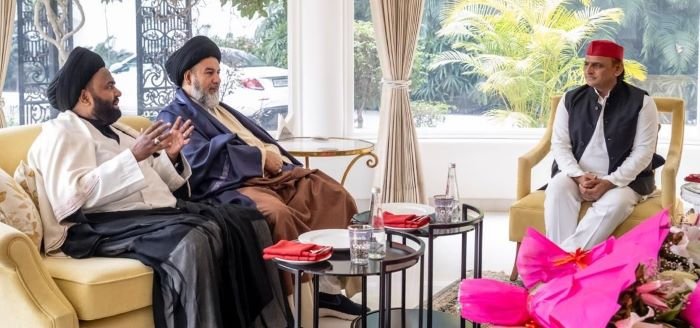 In a warm and meaningful interaction that blended spirituality, diplomacy, and shared cultural values, a distinguished Iraqi delegation met Samajwadi Party National President and former Chief Minister Shri Akhilesh Yadav. The delegation, led by Maulana Javed Abdi and represented the revered spiritual leader of Najaf, Ayatollah Sheikh Mohammad Yaqoobi. Among the visitors were Allama Syed Ali Al Yasiri, Allama Syed Ali Naqi Zaidi, Allama Dr. Syed Kalbe Abbas Rizvi Al Ijtehadi, and Allama Sheikh Saleh.